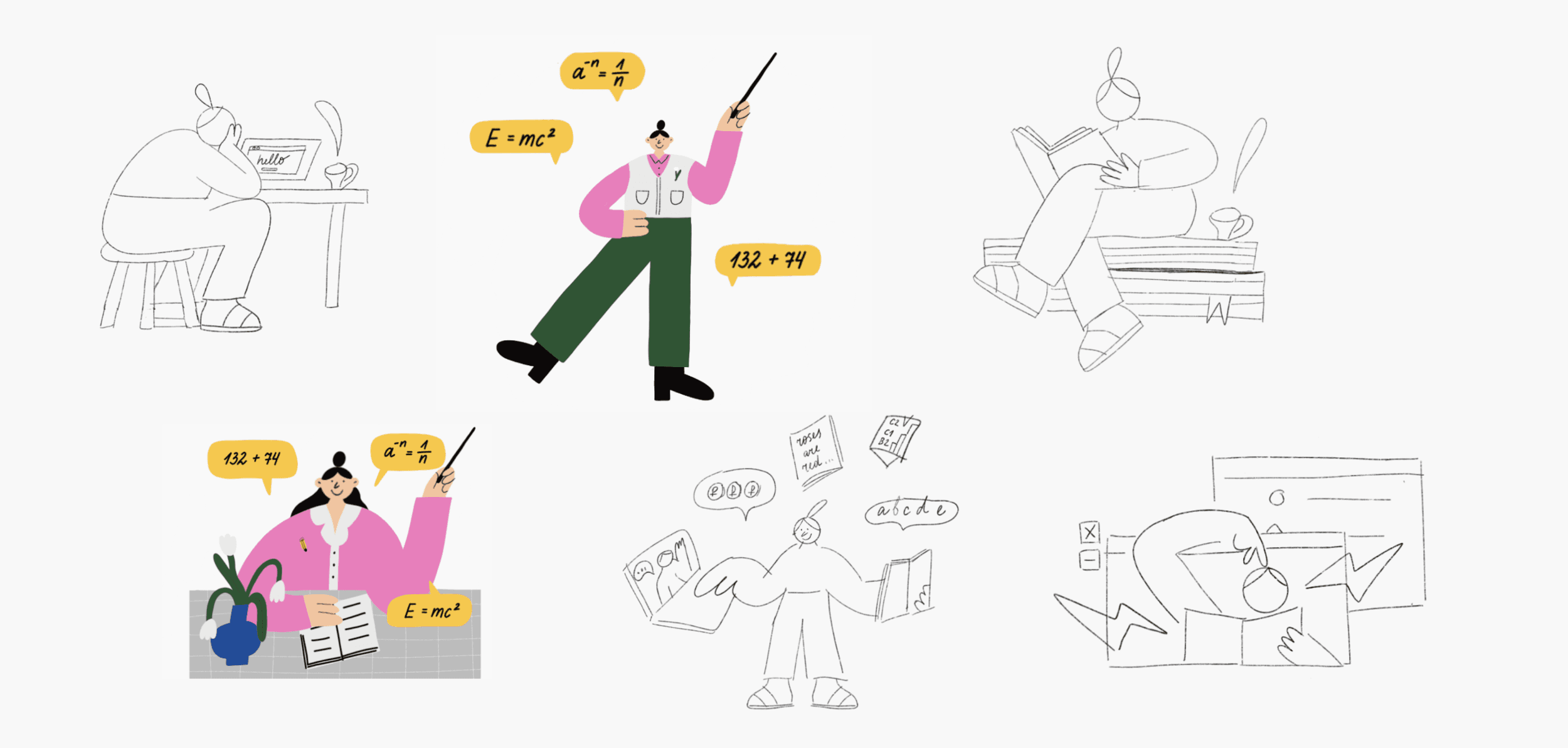 Illustration covers for the articles about why do we love our teachers and what is stopping us from learning English.